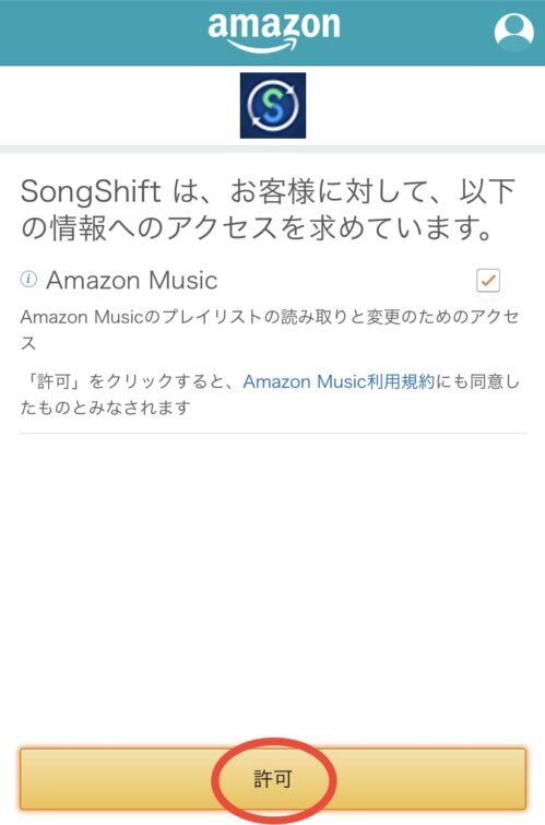 Amazon Musicへのアクセスを許可すれば