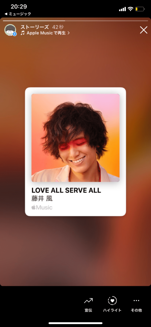ストーリー投稿されたジャケット写真をタップすれば、Apple Musicに飛んで曲を聴くことができますよ。
