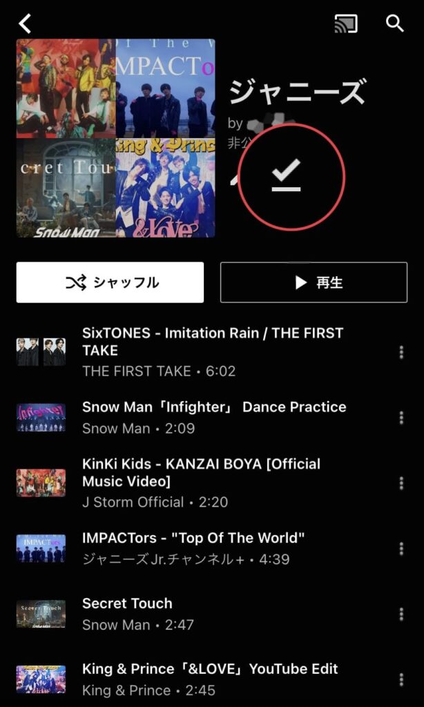 今回は私が作ったジャニーズ(非公開)というプレイリストに入れてみますね。